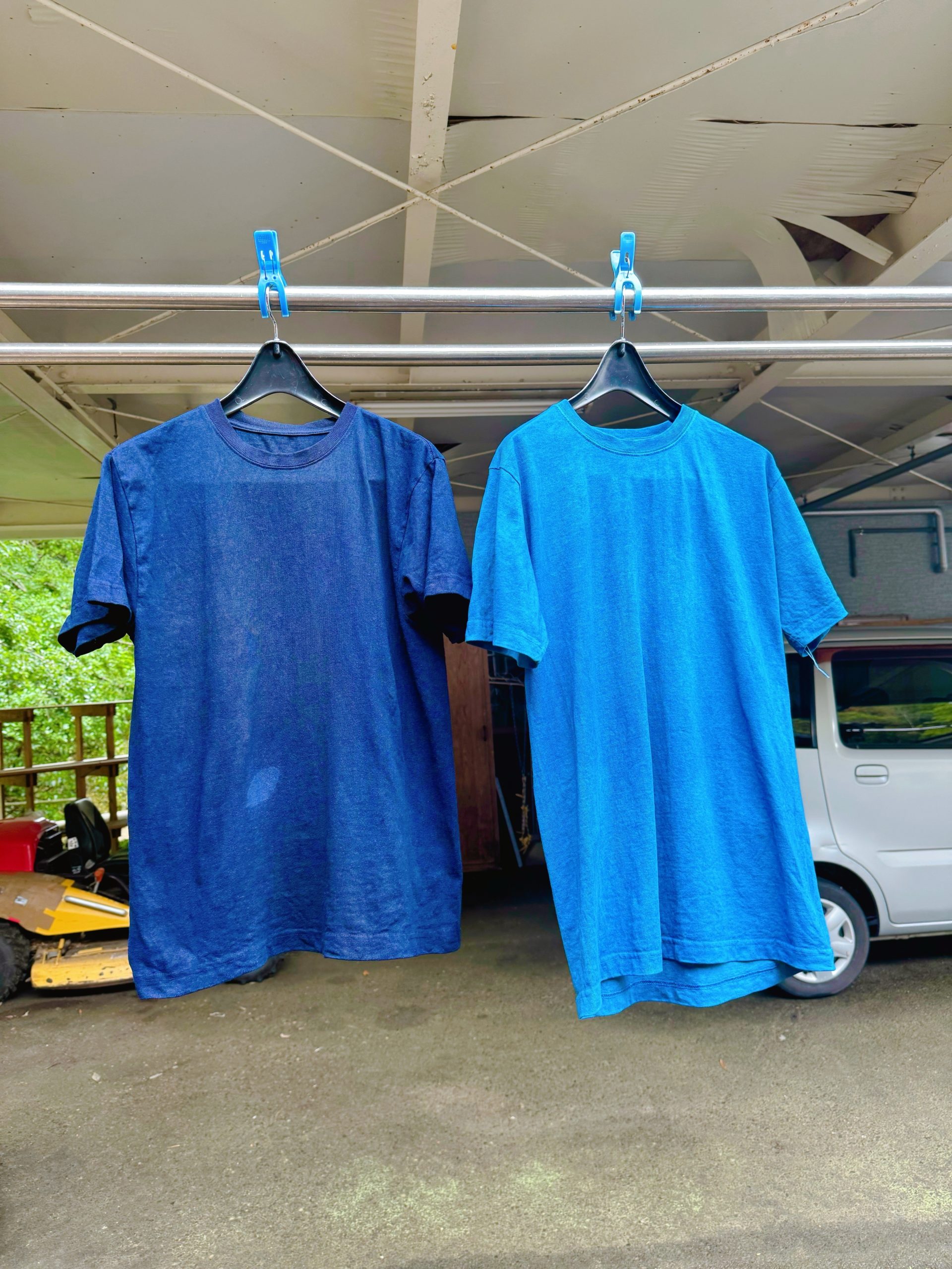 出来るだけ濃い藍色にしたくて、贅沢にも7回藍染の工程を行ったよ。